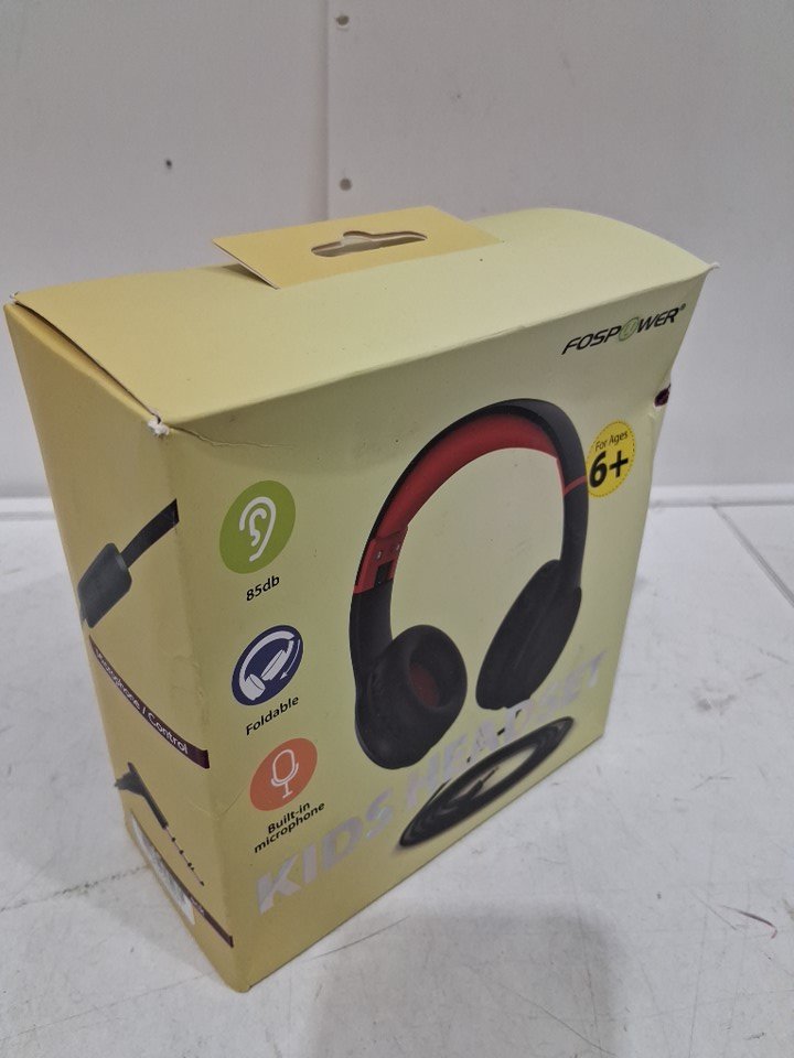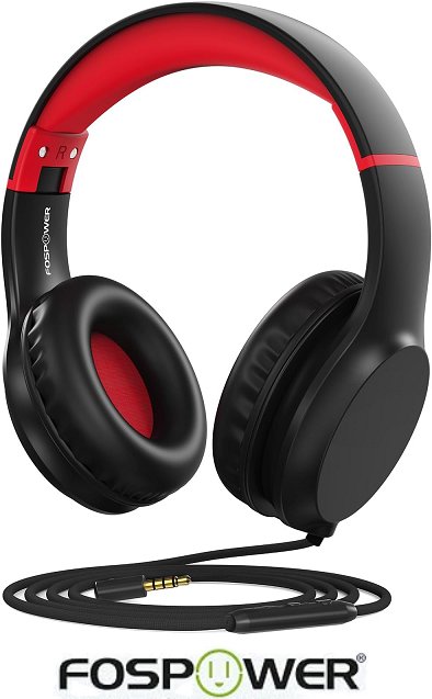 Kids FosPower Foldable Lightweight Over Ear Headphones with Microphone - 85dB Safe Volume Limited - red / black