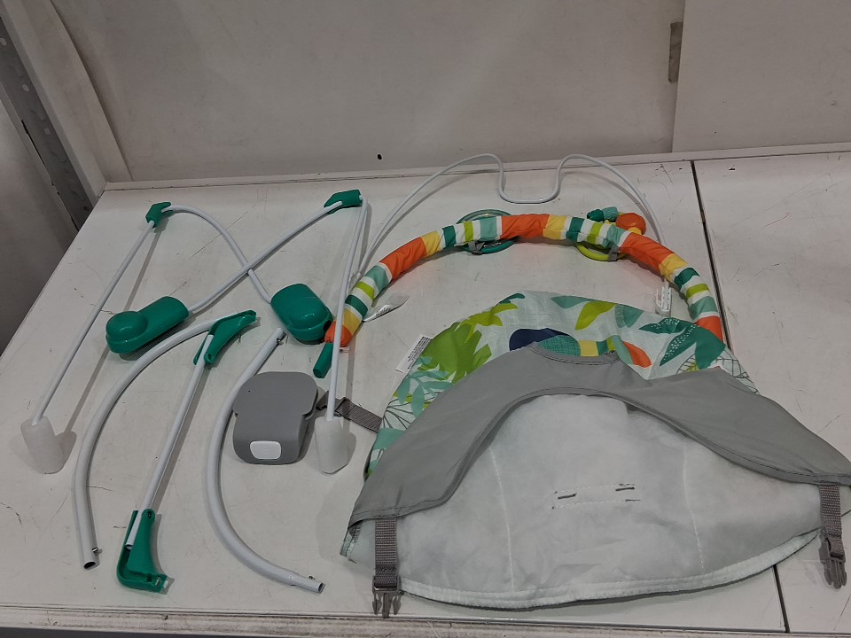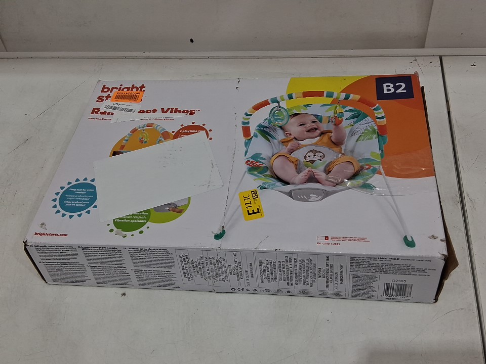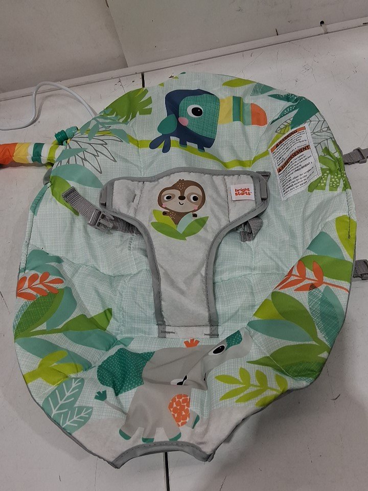 BRIGHT STARS 3 point harness VIBRATING BOUNCER WITH TOY BAR - RAINFOREST VIBES (MODEL: 12227)