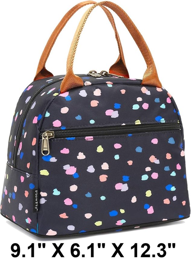 kids flowfly insulated lunch bag - 9.1"x6.1"x12.3" - black flower