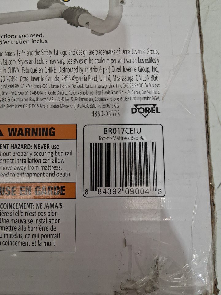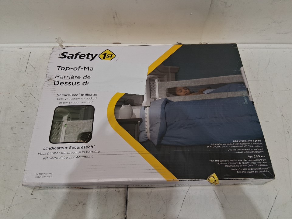 SAFETY 1ST TOP-OF-MATTRESS BED RAIL with ADJUSTABLE HEIGHT - 36" x 12" to 18" - GREY/white (MODEL: BR017CEIU)