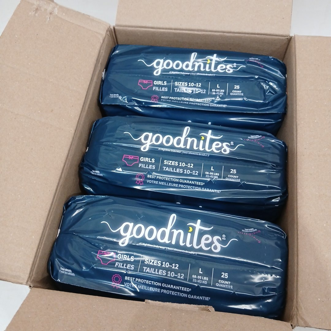 75pk girls Goodnites Nighttime Bedwetting Underwear - LARGE (68-95 lb) - (MODEL: 53372)