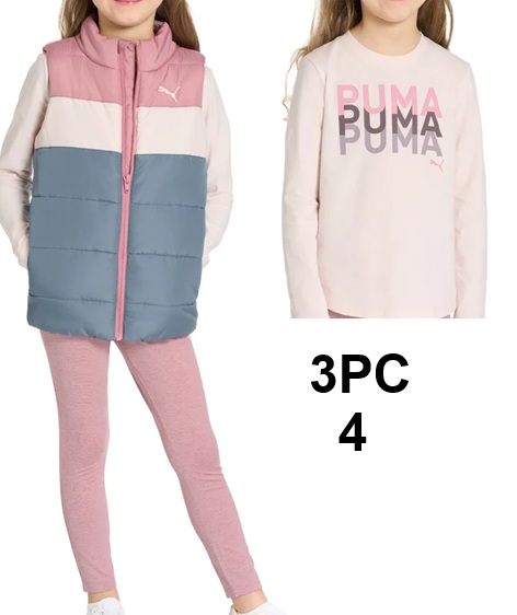 3PC GIRLS PUMA VEST, LONG SLEEV AND LEGGING SET - SIZE 4 - PINK (STYLE:1108888)
