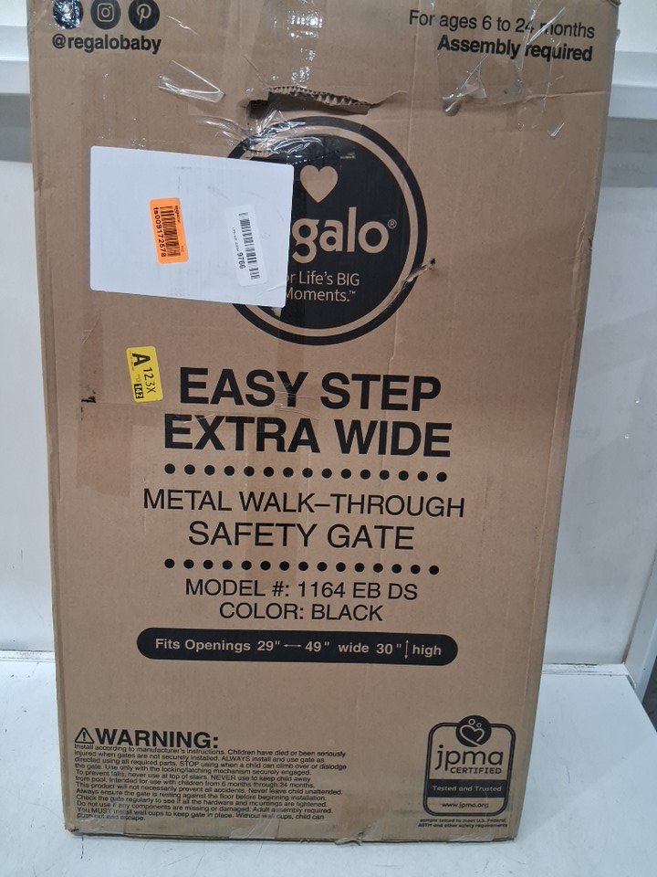 REGALO EASY STEP EXTRA WIDE METAL SAFETY GATE - 30" x 29" - 49" - BLACK (MODEL: 1164EBDS)
