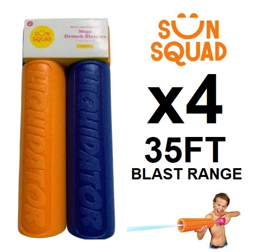 2 (2PK) SUN SQUAD MAXLIQUIDATOR MEGA DRENCH BLASTERS, BLASTS UP TO 35FT - BLUE/ORANGE