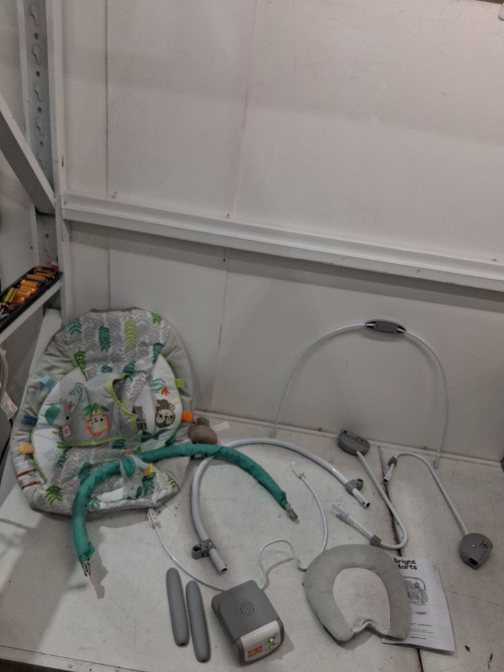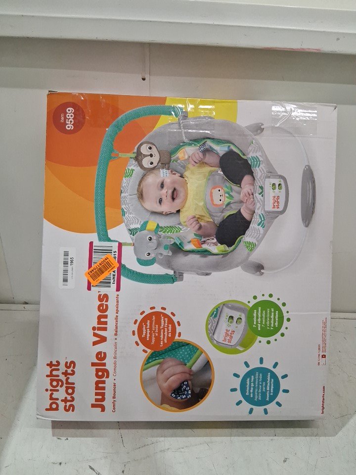 BRIGHT STARS 3 point harness VIBRATING BOUNCER WITH TOY BAR - jungle vines (MODEL: 9589)