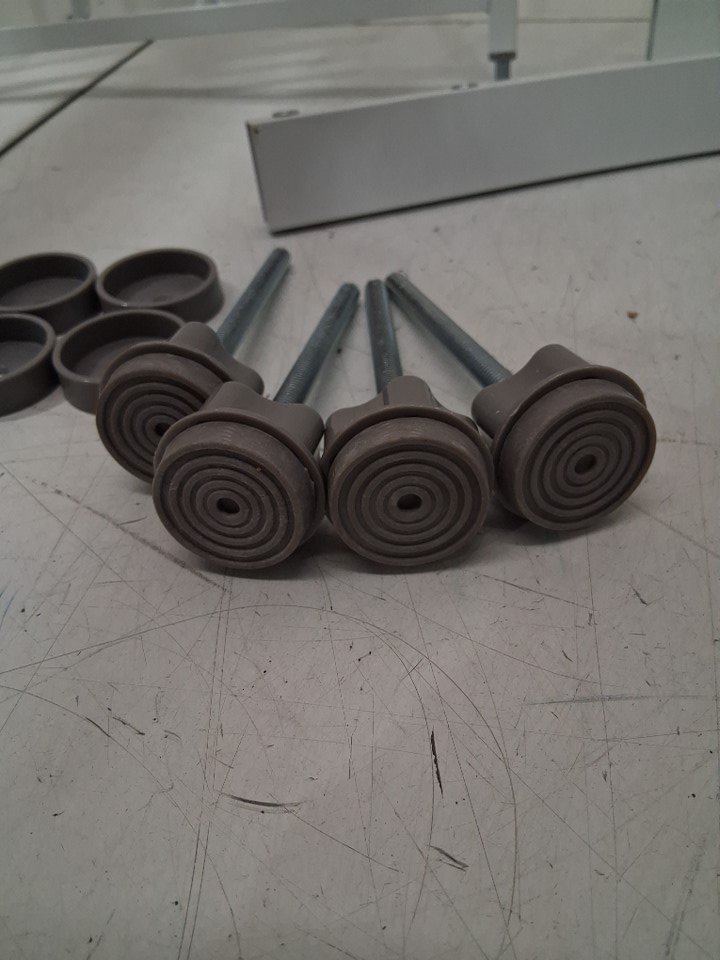 wear on bottom of rubber stoppers, showing light use.