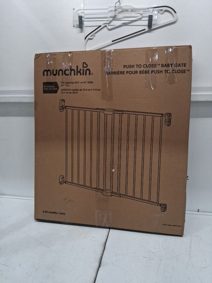 MUNCHKIN PUSH TO CLOSE BABY GATE FOR STAIRS WITH HARDWARE - 27" x 30.5" x 2.25" - BLACK - (MODEL: 46777001-SIOC)