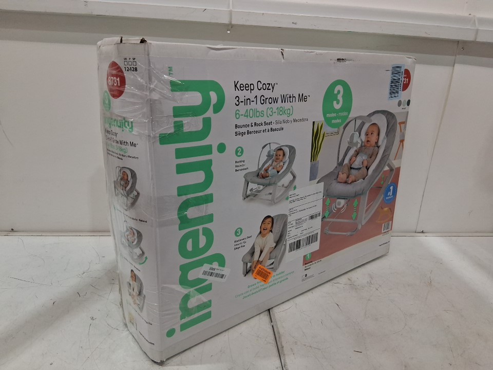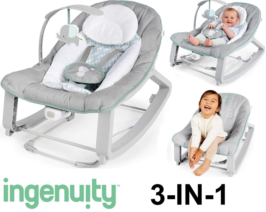 Ingenuity 3-in-1 Keep Cozy Grow with Me Vibrating Baby Bouncer, rocker & chair - 40lbs max- weaver theme- grey/white/green (model: ‎12428)