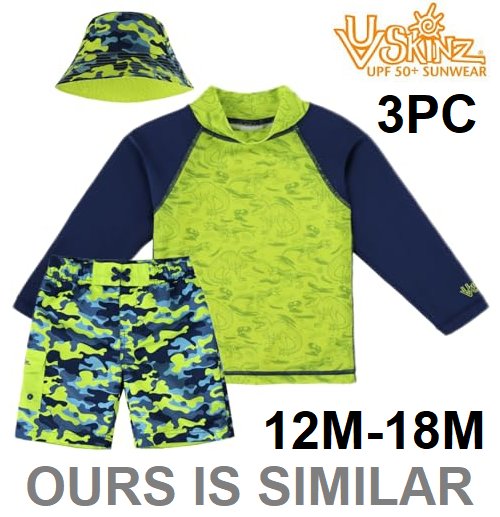 3PC kids UV Skinz Toddler Swim Set UPF 50+ Chlorine and salt-water resistant - 12M-18M - blue/yellow (style: 807288)