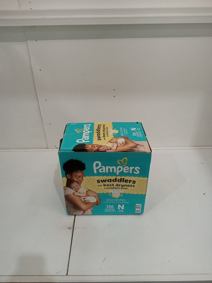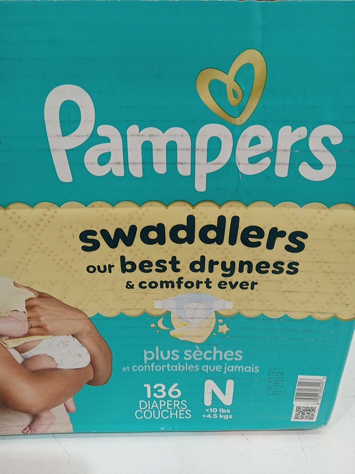 136PK PAMPERS SWADDLERS DIAPERS - NEWBORN SIZE