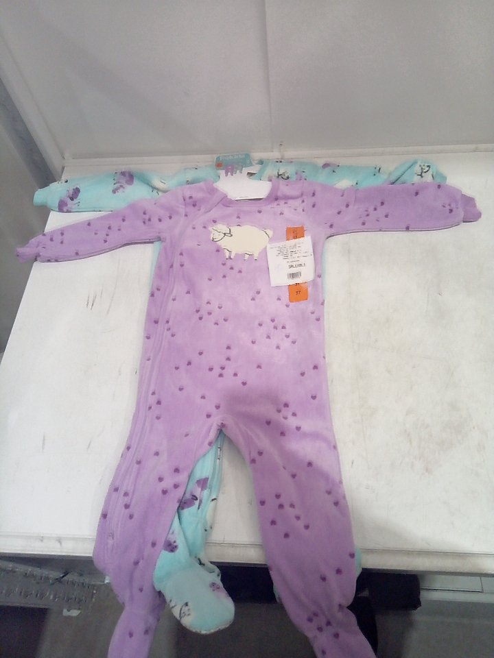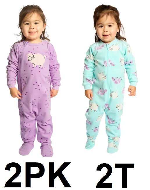 2PK Pekkle Kids Fleece FOOTED Sleeper - 2T - PURPLE / LIGHT BLUE (STYLE: 9001235)