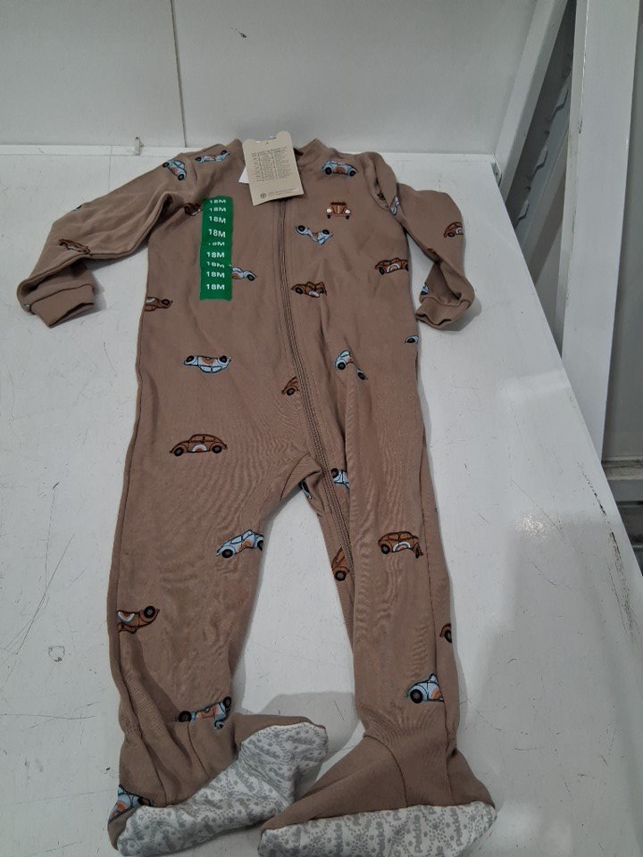 Infant Pekkle Organic Cotton Sleeper - 18M - Brown/cars (STYLE: 4177412)