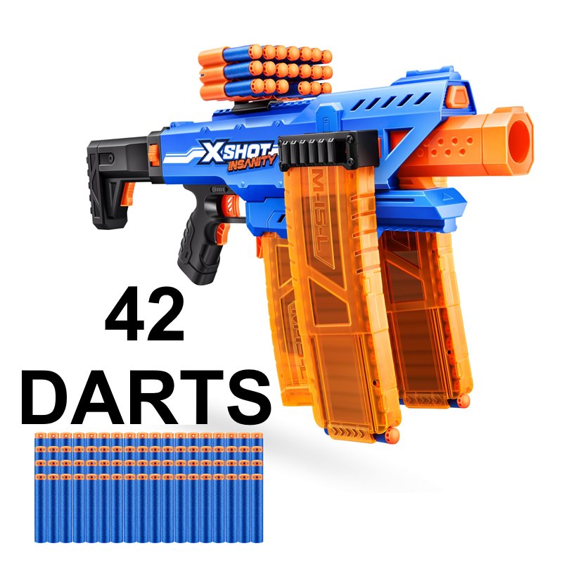 ZURU XSHOT Insanity motorized foam dart blaster with 42 darts - Orange/Blue