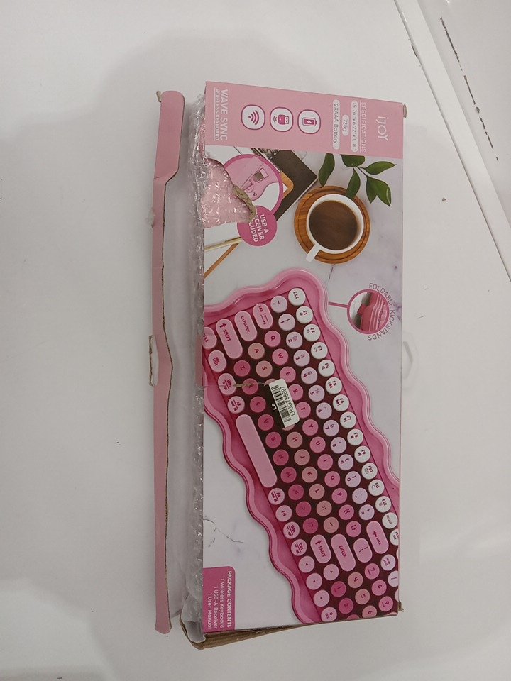 ijoy wireless wavy keyboard WITH usb-a receiver & BUILT-IN FOLDABLE KICKSTANDS - 102 keys - PINK (model: IJ10498-TT)