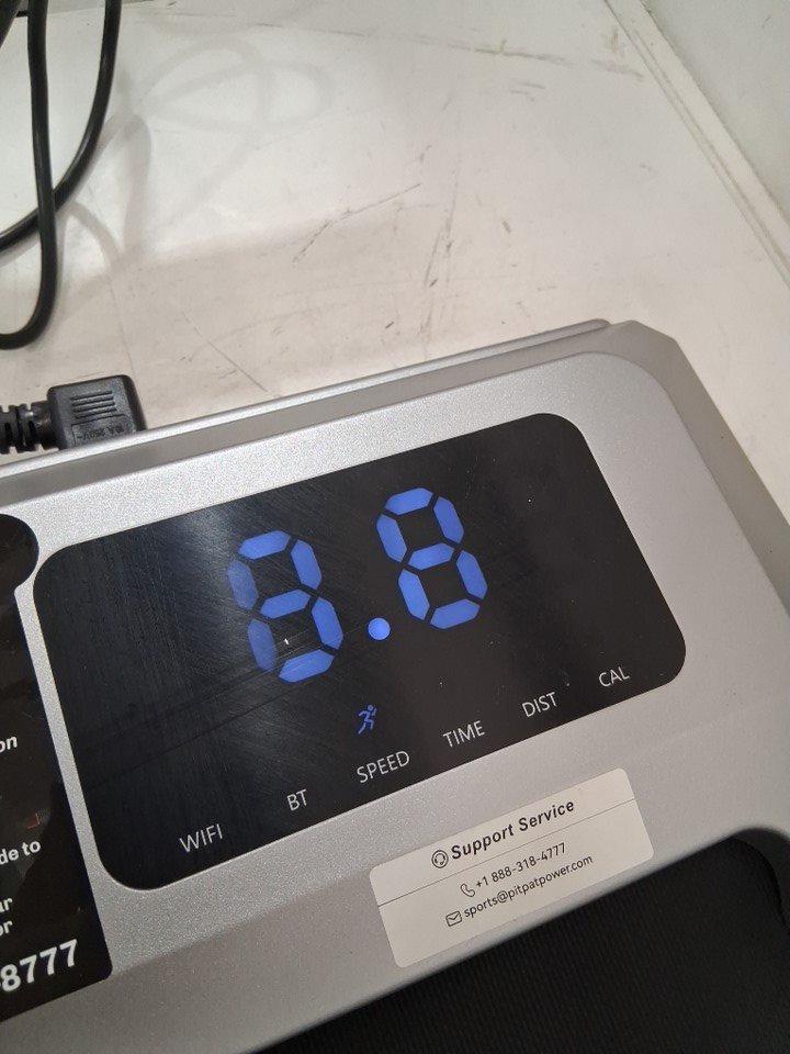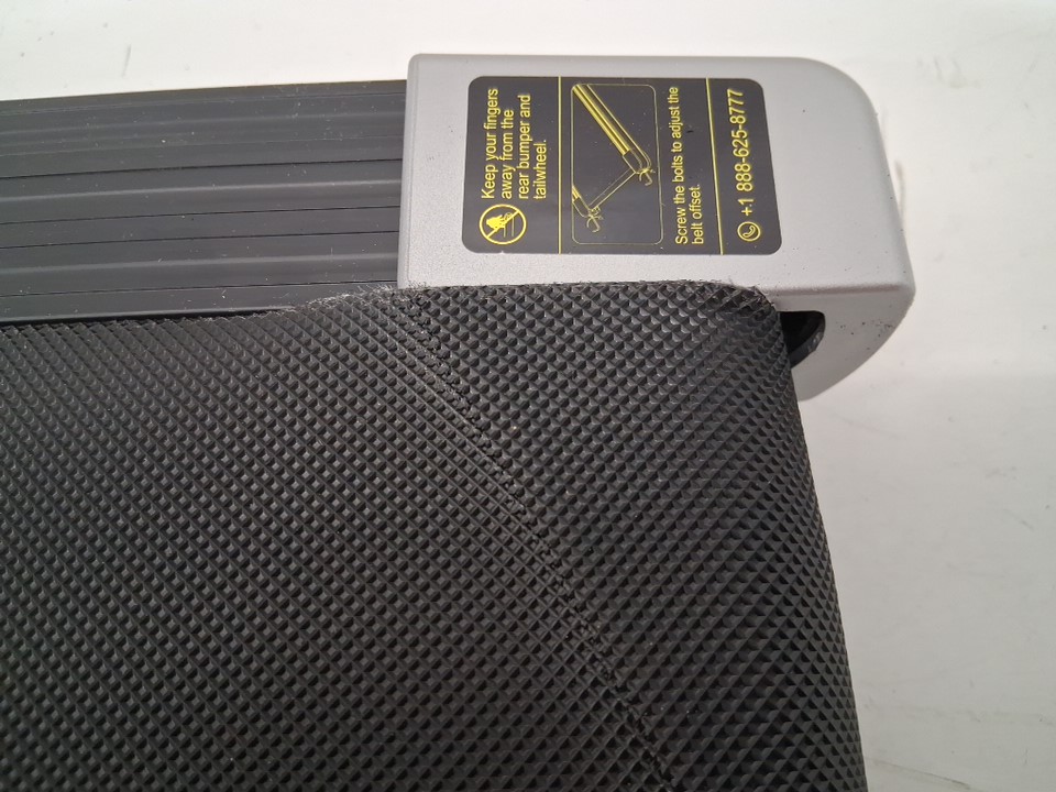 The tread is slightly misaligned and beginning to cut into the plastic in the bottom right corner, there are also some light stains on the faceplate and some marks on the tread due to packaging/shipping - see photos. Outside of these issues, the treadmill appears to be in new condition. If customer can realign the tread, it should function without any issues. Tested for power and max speed.