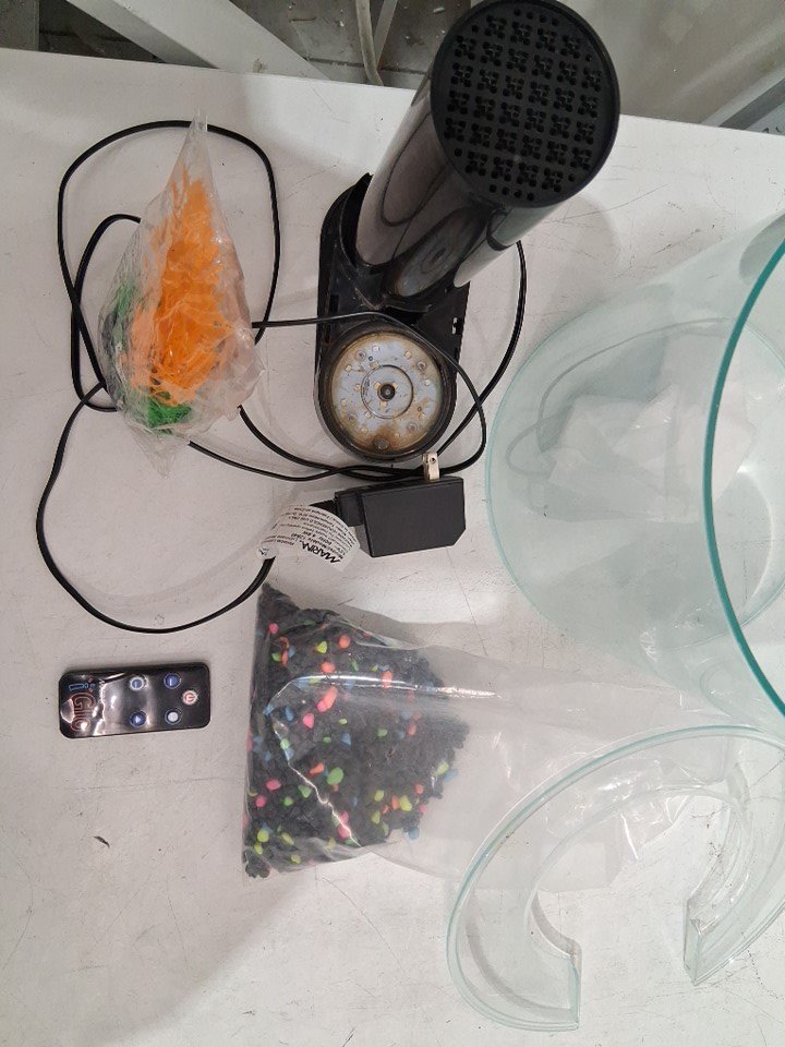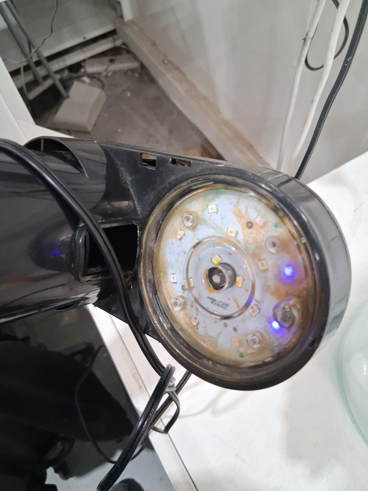 Has residue build up on tank, Lid and Bubbler from previous use Tested bubbler for Power , Some lights do not work see photo