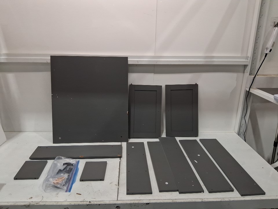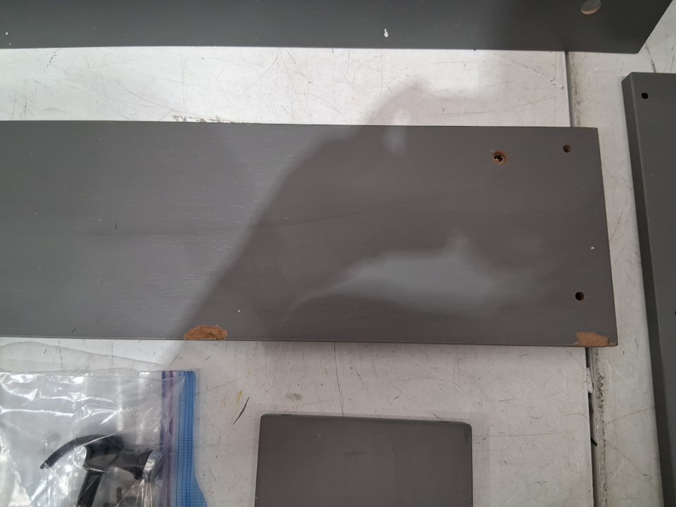unable to provide measurements as this product did not come with a manual items back board and one shelf has some damage ( see photos)