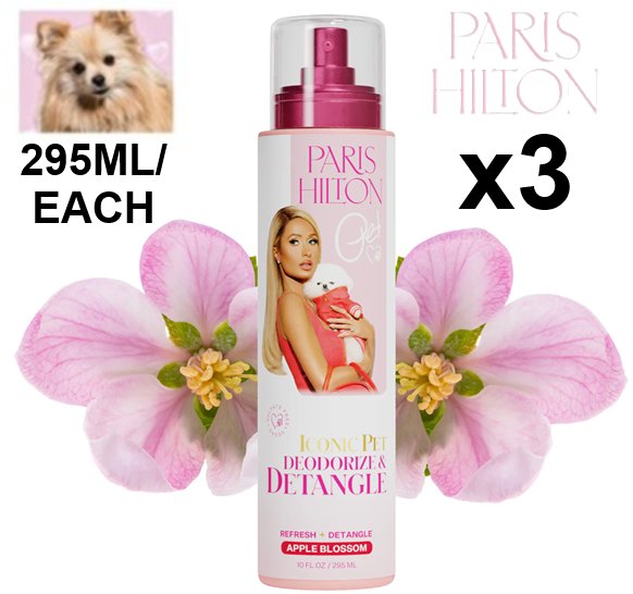 3 PARIS HILTON Iconic Pet DEODORIZE & DETANGLE SPRAY for dogs - 295ML/EACH - apple blossom