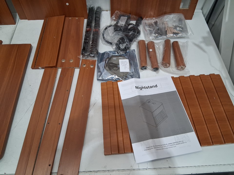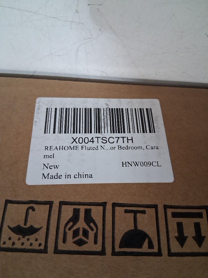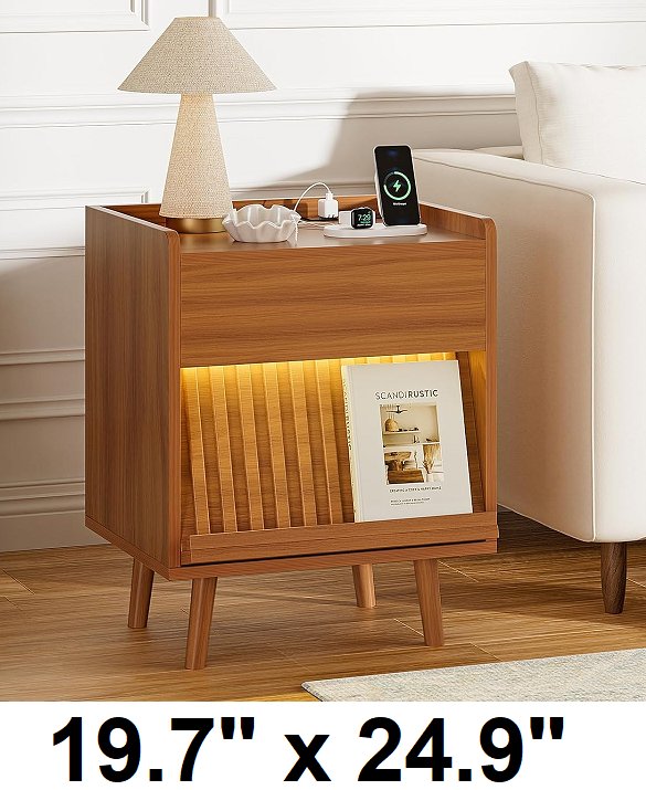 REAHOME Fluted Night Stand with Charging Station and LED Lights - 19.7" x 24.9" - Caramel (model: hnw009cl)