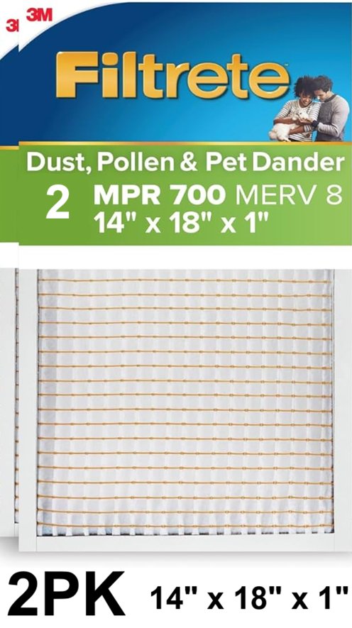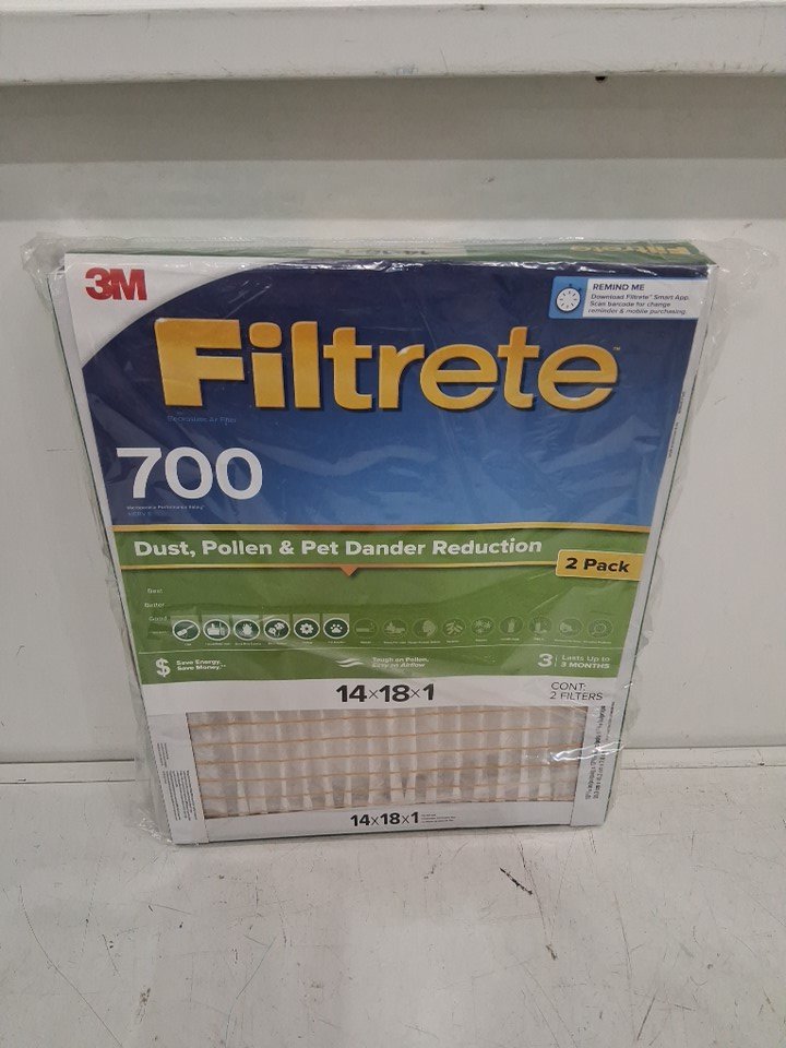 2PK 3M Filtrete MERV 8 MPR 700 Dust, Pollen & Pet Dander Reduction Air Filters - 14" x 18" x 1" - White