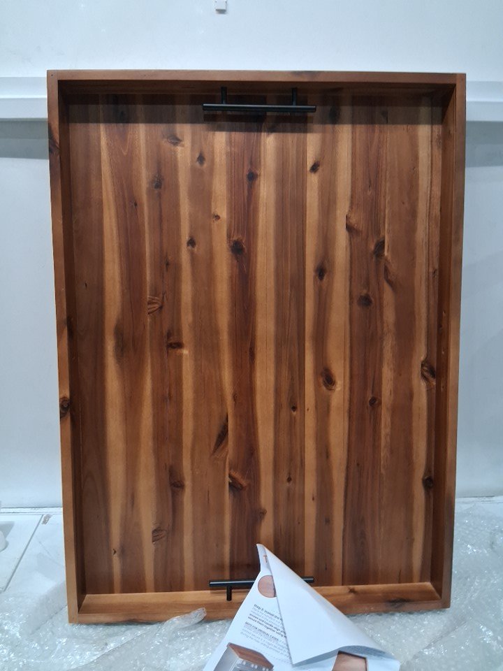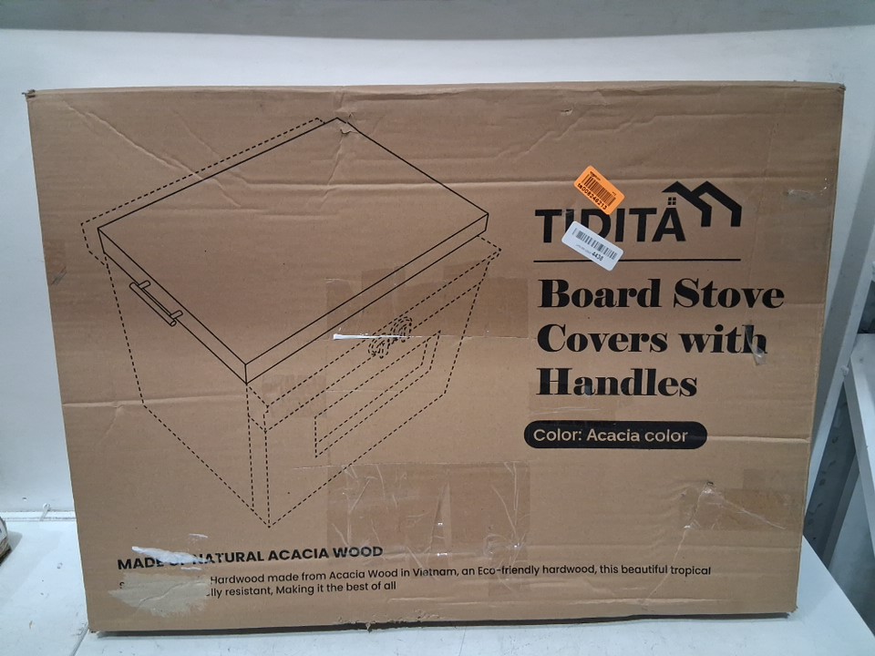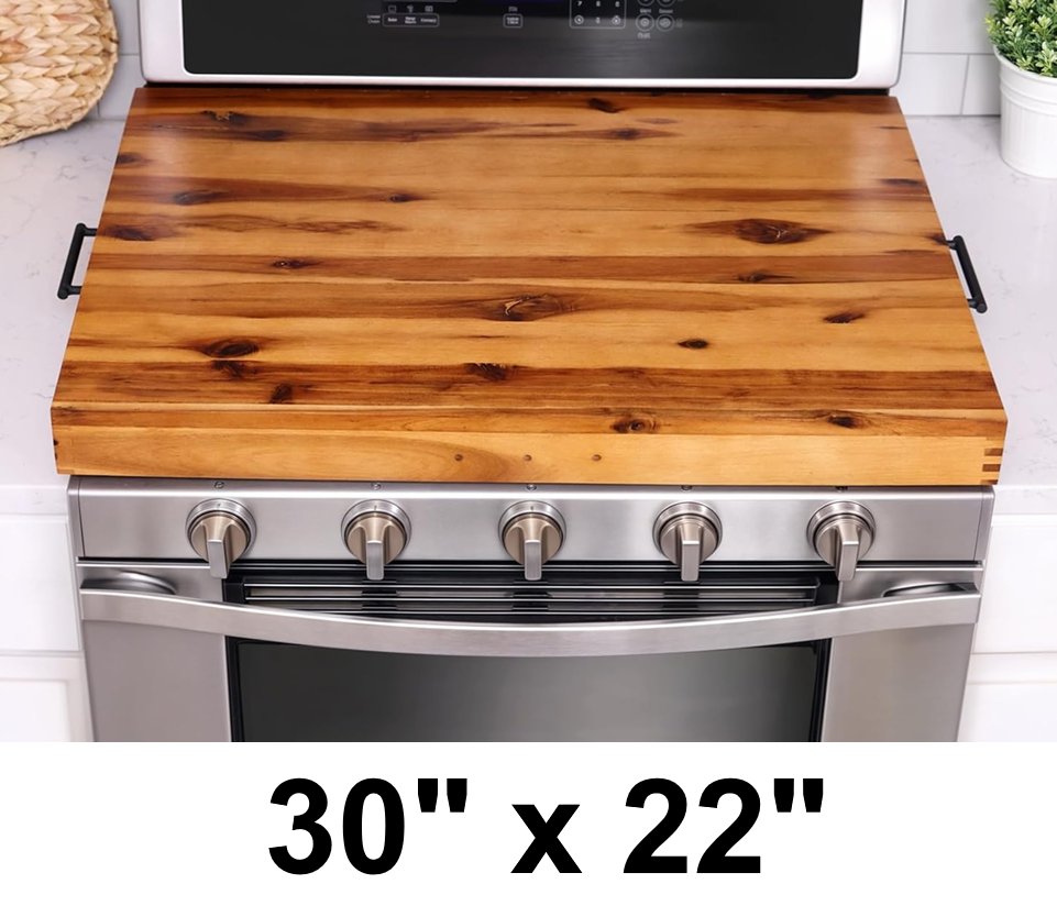 Acacia Wood Stove Top Cover and board with Handles - 30" x 22" - Acacia brown (model: ‎STCV2S)