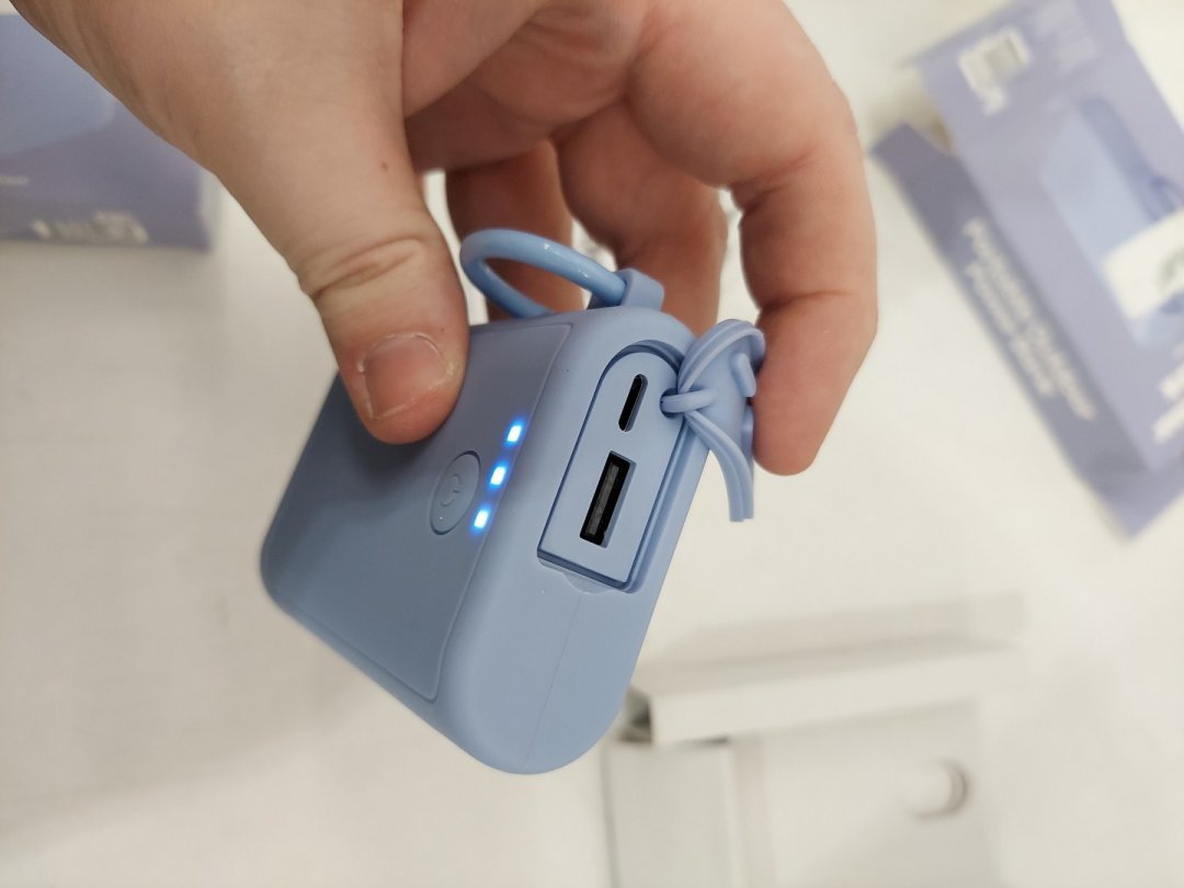 gems portable outdoor 12w power bank with carabiner - usb & usb-c output, 6000mah - LIGHT BLUE/PURPLE