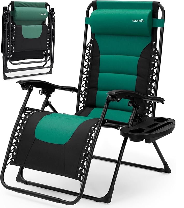 serenelife outdoor foldable padded zero gravity chair with cup holder attachment - 36.6" x 28.7" x 5.12" - 264lbs capacity - green (model: sl1zgrcp36)