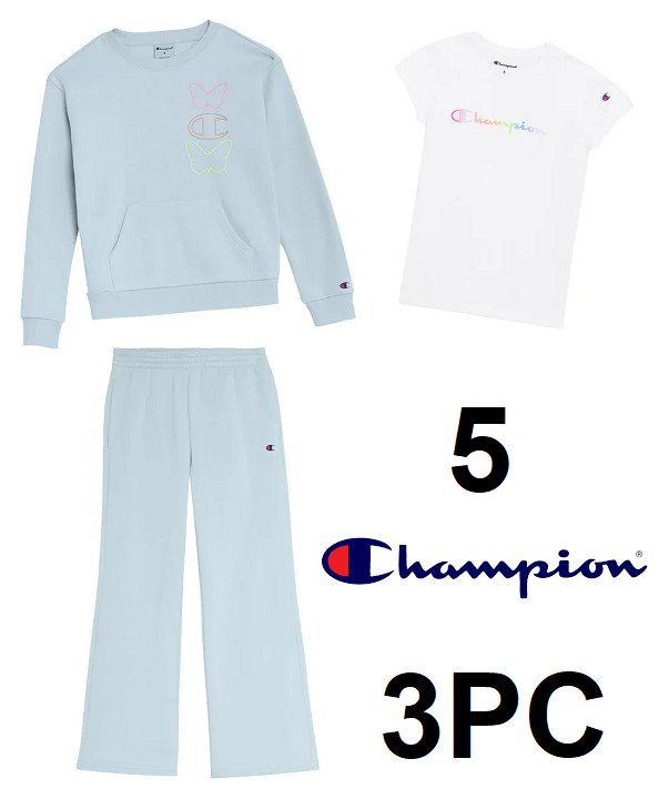 3pc kid's champion sweater, shirt AND pant set - SIZE 5 - BLUE/white (STYLE: 1114545)