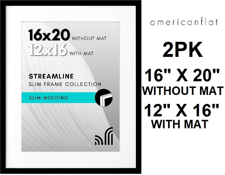 2pk americanflat Horizontal and Vertical Format wall photo frame - 16" x 20" without mat/ 12" x 16" with mat- black