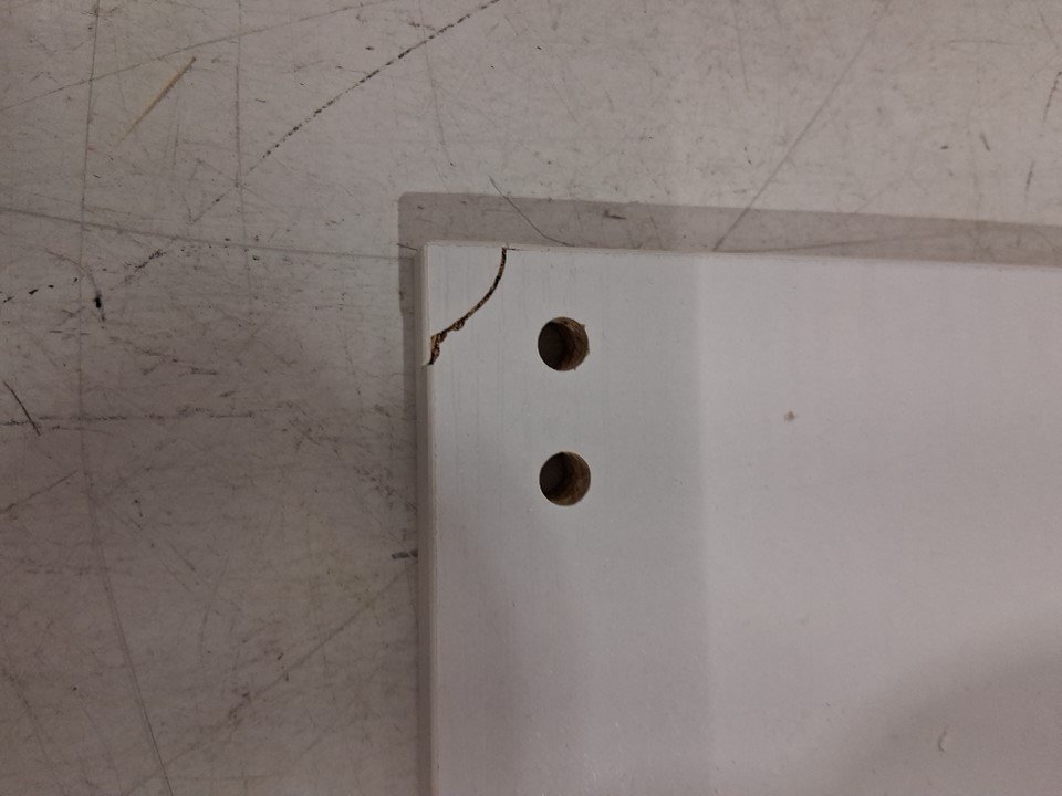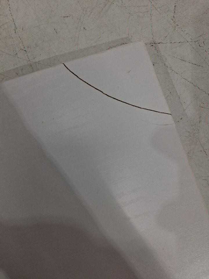 Product has a few small corner cracks and a light chip in the wood on one of the panels (See photos)