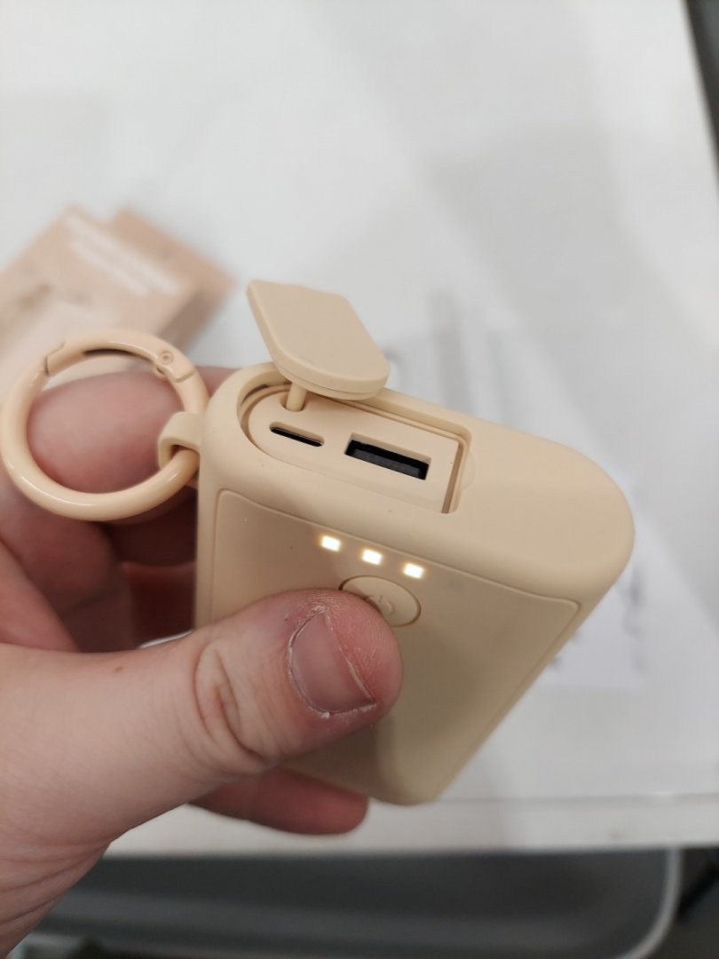 gems portable outdoor 12w power bank with carabiner - usb & usb-c output, 6000mah - BIEGE