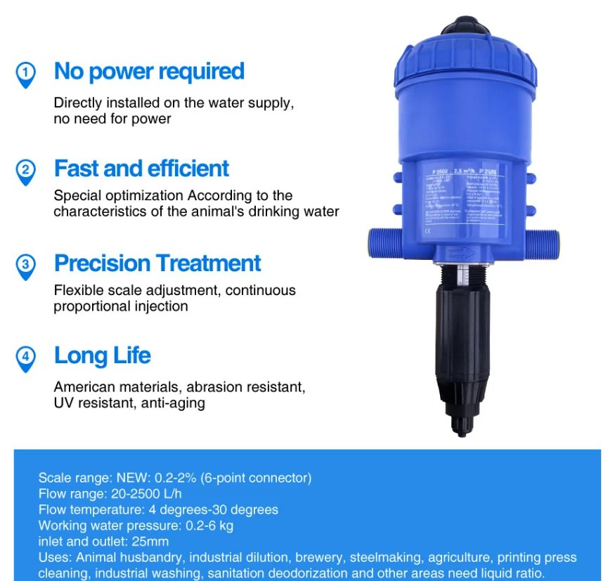jiayitong adjustable fertilizer garden/farming water powered chemical proportioner doser dispenser - 0.2%-2% - 12-3000l/h - blue/black (model: p2502)