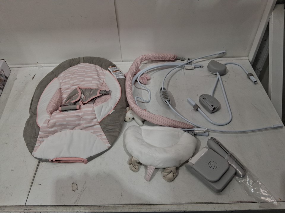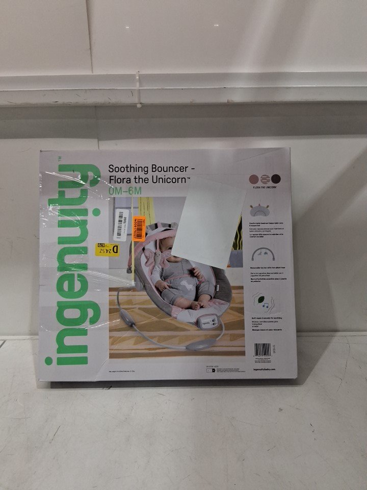ingenuity soothing baby bouncer with vibrations, sounds and unicorn plush - 0-6 months up to 20lbs - pink flora (model: 12201)