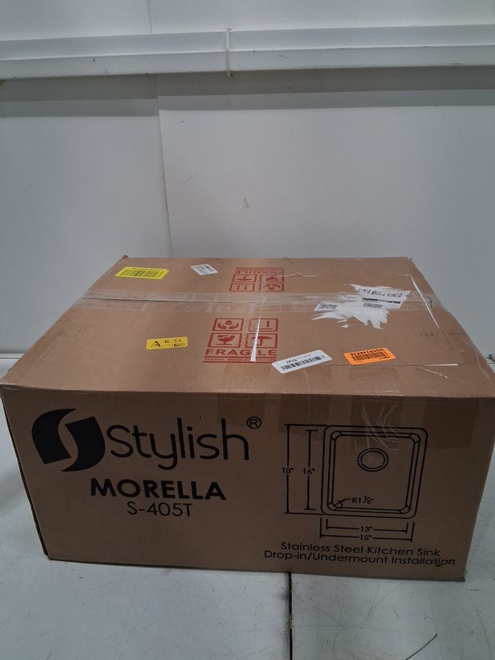 stylish in or Undermount Kitchen Sink 18G Stainless Steel - 15" x 18" x 8" drop - (model: S-405T)