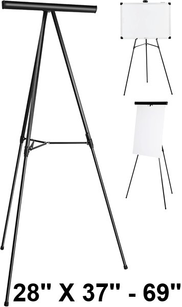 Amazon Basics Heavy Duty High Boardroom Aluminum Flipchart Whiteboard and Display Easel Stand with Adjustable Height Telescope Tripod - 28'' x 37''-69'' - black (model: kk2456a)