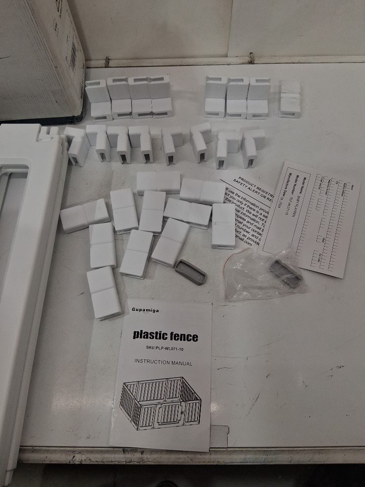 There is some dirt/hair on the panels indicating previous handling/use. Please note that one of the 8 corner connector pieces is damaged (see photos)