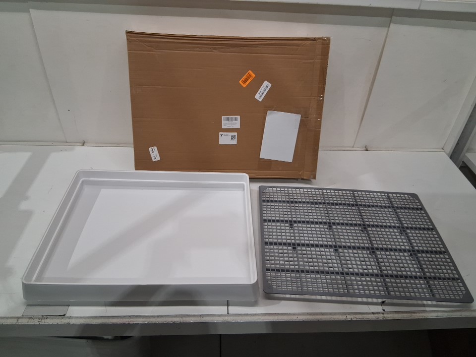 fantperful large pig litter box with grate for rabbits and guinea pigs - 22" x 18" x 3" - white/grey