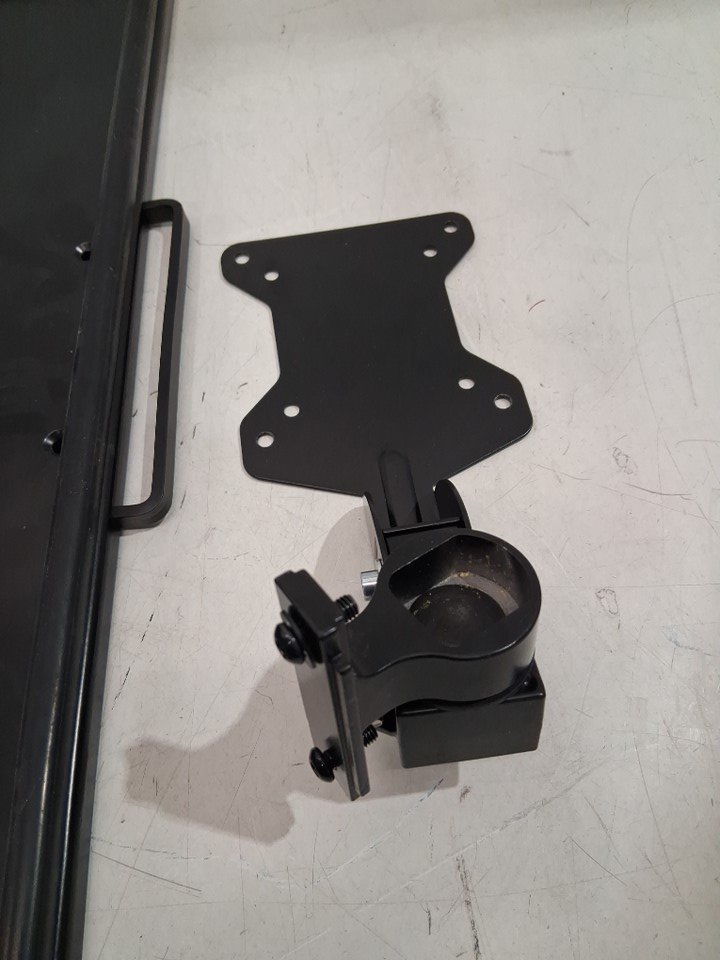 There was no hardware found in box when inspecting monitor workstation and there are also some marks and dirt from use, see photos.