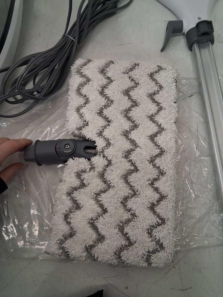 mop pad has loose pet hair on it, and water reservoir was visible water in it. has been tested for power