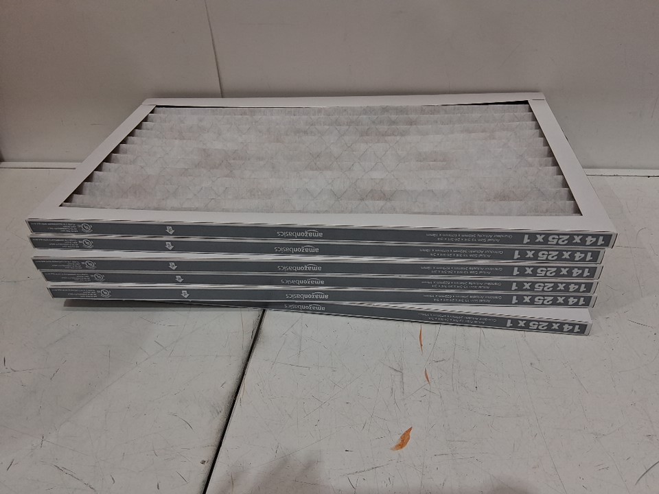 6pk amazon basics replacement ac furnace air filters - 14" x 25" x 1" - merv 5 - white