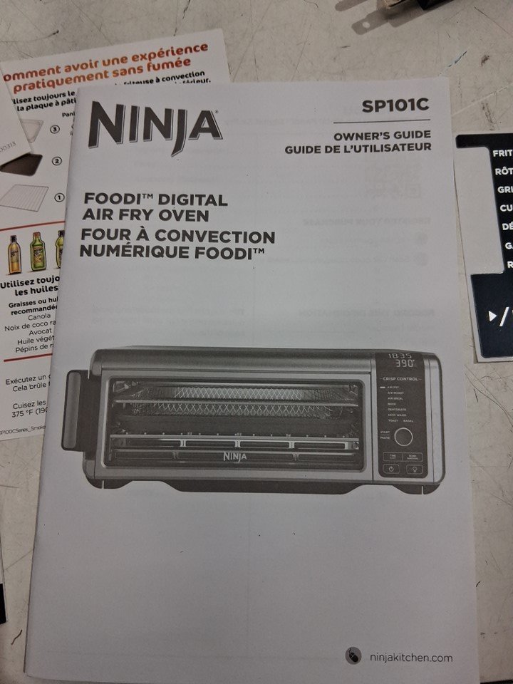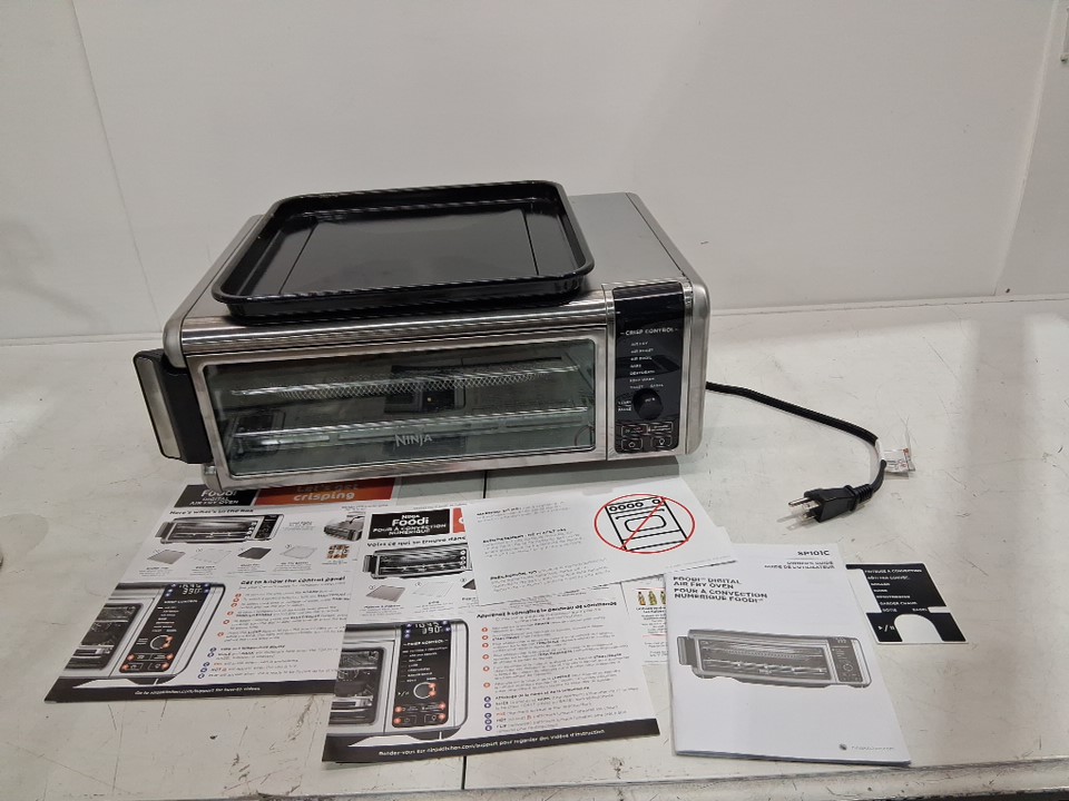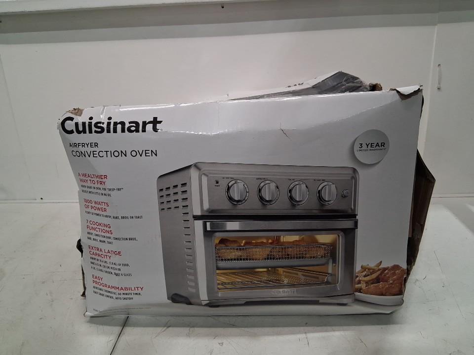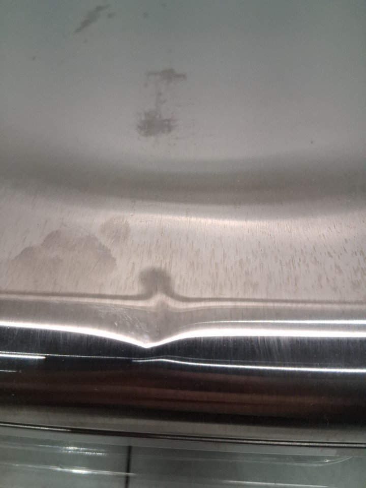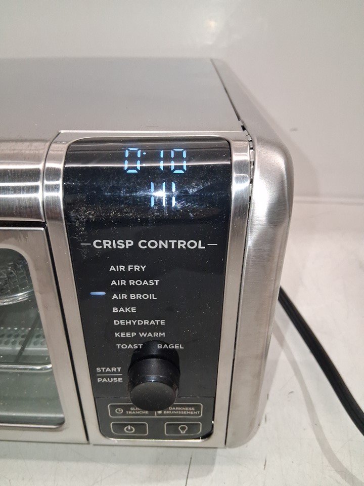 Tested for power, there are some fingerprint marks on the top of oven, a dent on the top as well and some food crumbs on the inside of oven the tray has some food stains as well, see all photos.