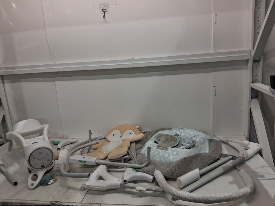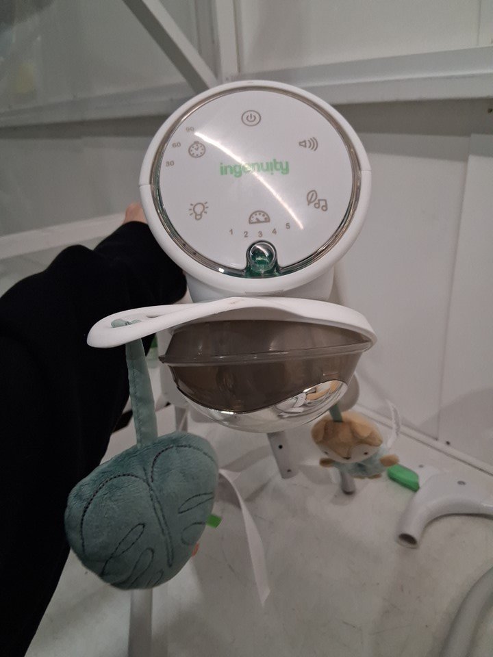 There are some marks and scratches on baby swing from use, there is also no power cord with swing so item can't be tested but one can be purchased to use, see photos.