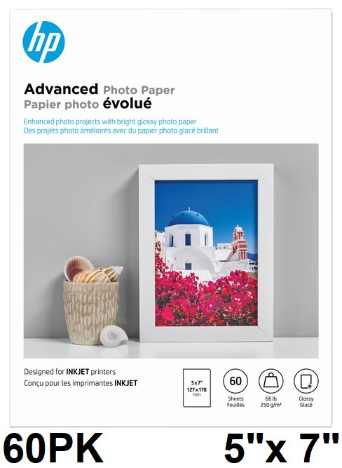 60PK HP Advanced Glossy Photo Paper - 5" x 7" - WHITE (MODEL: Q8690A)