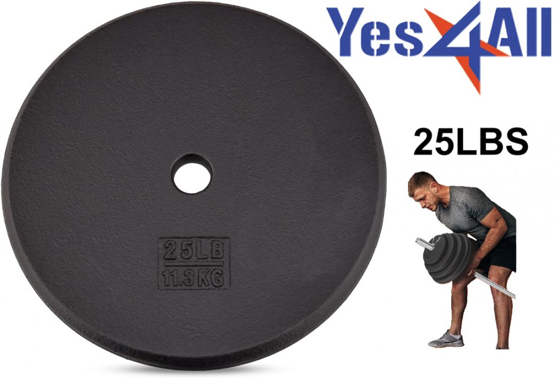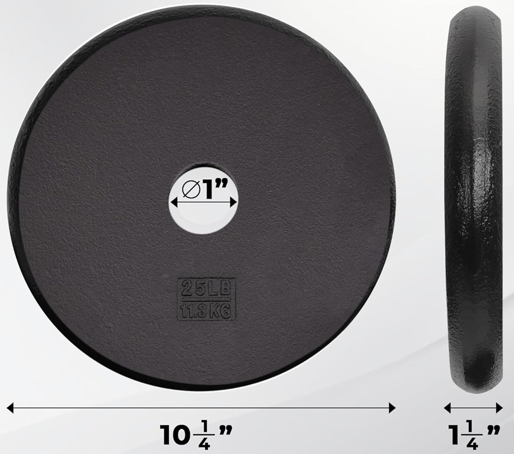 Yes4All Standard Cast Iron Weight Plate - 1" Hole - 10.3" x 1.3" - Black (Model: ‎T7UN)