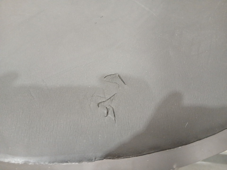appears heavily used due to some small tears in the fabric and heavy dirt present.