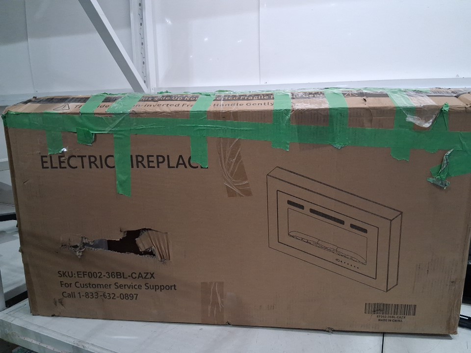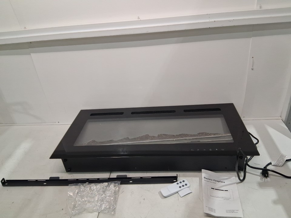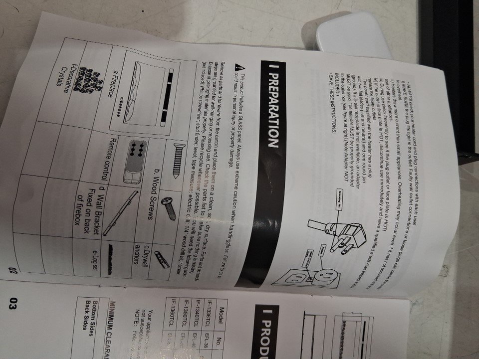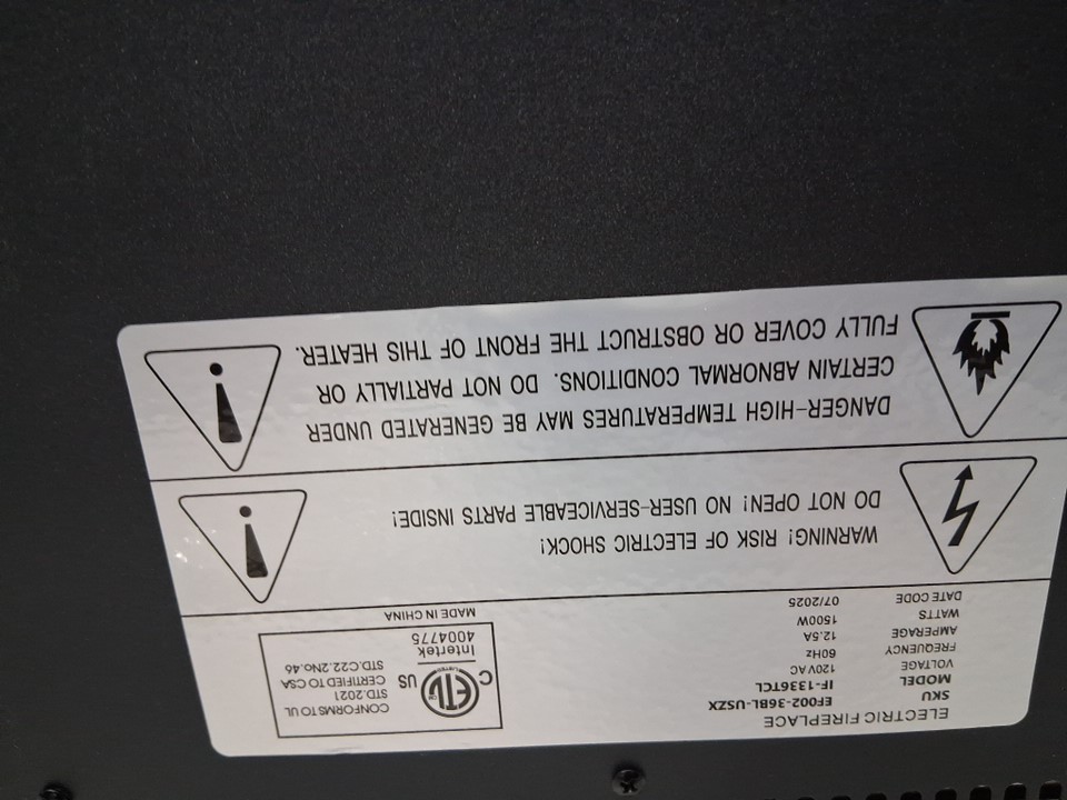 when tested fireplace and plugged in it makes a beep noise but fireplace doesn't fully turn on, there are also some marks on the front and back of fireplace also missing the screws for mounting it, see photos.