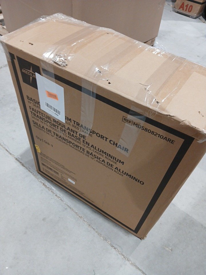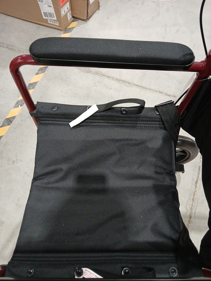 MEDLINE BASIC ALUMINUM TRANSPORT WHEELCHAIR - 19" - 12" REAR WHEELS WITH BRAKES - 300lbs capacity - RED (MODEL: MDS808210ARE)