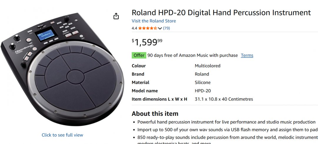 Roland HANDSONIC Digital Hand Percussion Instrument (MODEL: HPD-20)