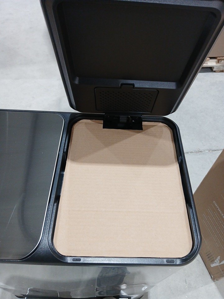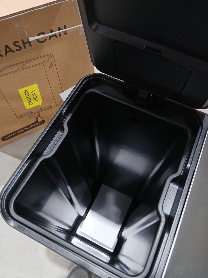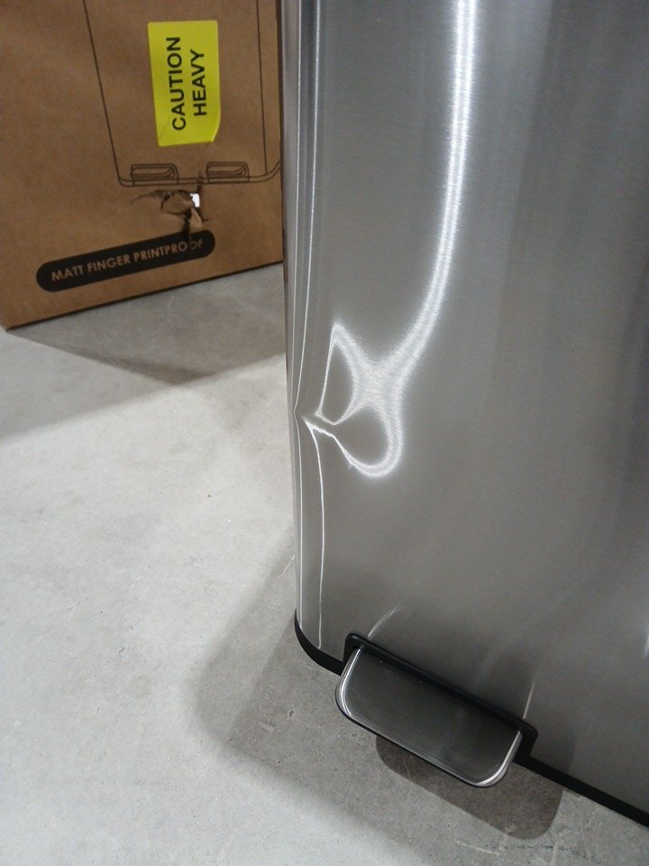 Please note there is a dent in the front of the bin, see photos. Does not affect function.