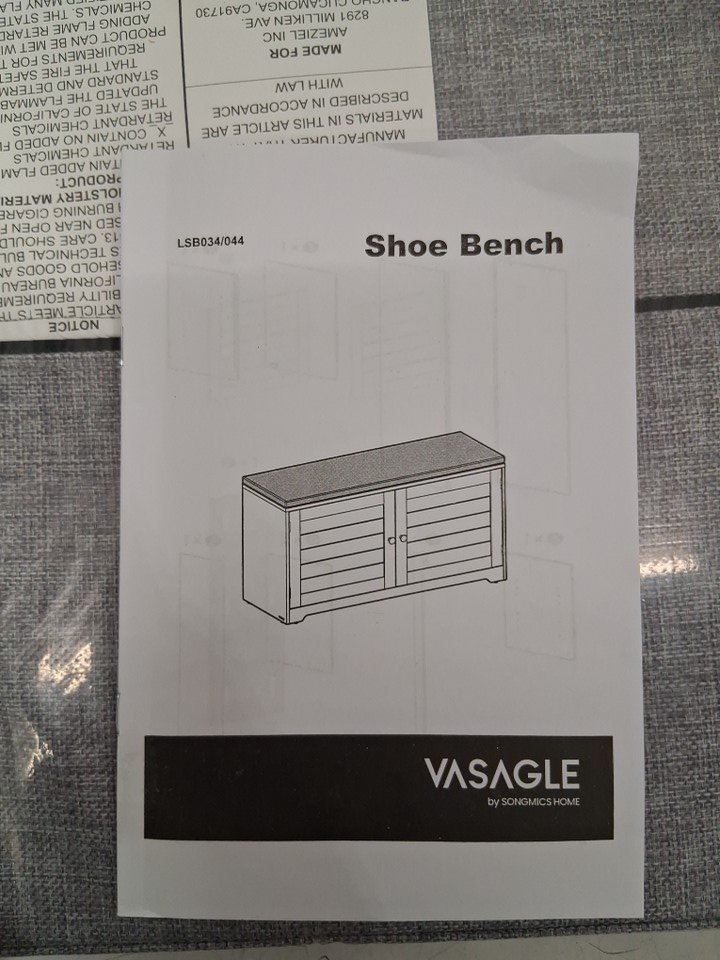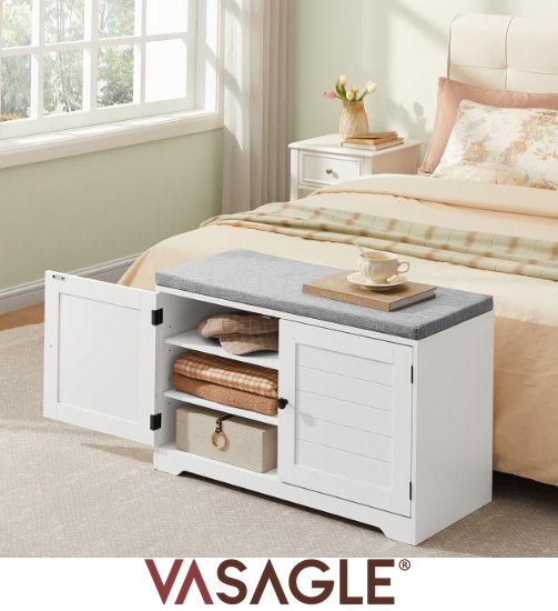 Vasagle Cushioned shoe bench with height adjustable shelves - 13" x 14" x 20.5" - White/Grey (Model: LSB044W01)